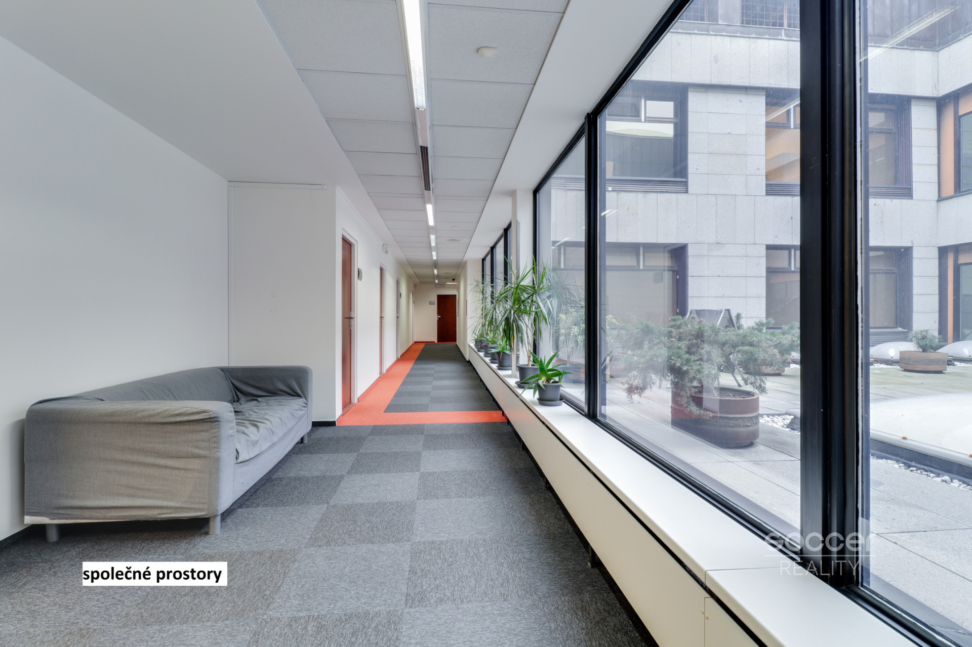 Na chodbě je k dispozici kuchyňka, sprchy, dámské i pánské WC. Dále je nájemci k dispozici nonstop ostraha, kamerový systém, centrální vytápění i chlazení, počítačové a telefonní sítě, noční trezor, příjezd nákladním autem.