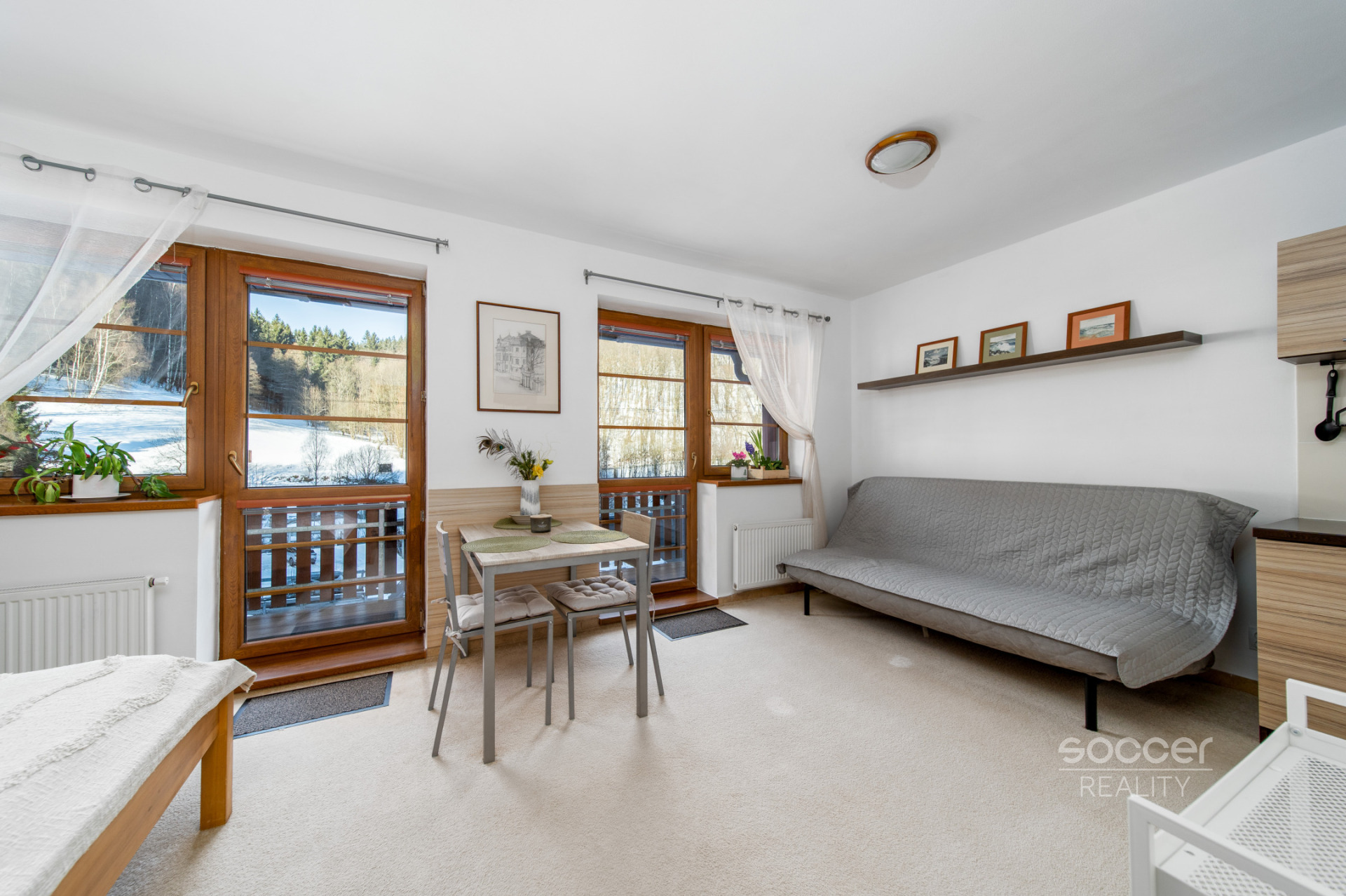 • Příslušenství: K bytu náleží sklepní kóje (2,3 m²) pro bezpečné uložení lyží a kol.